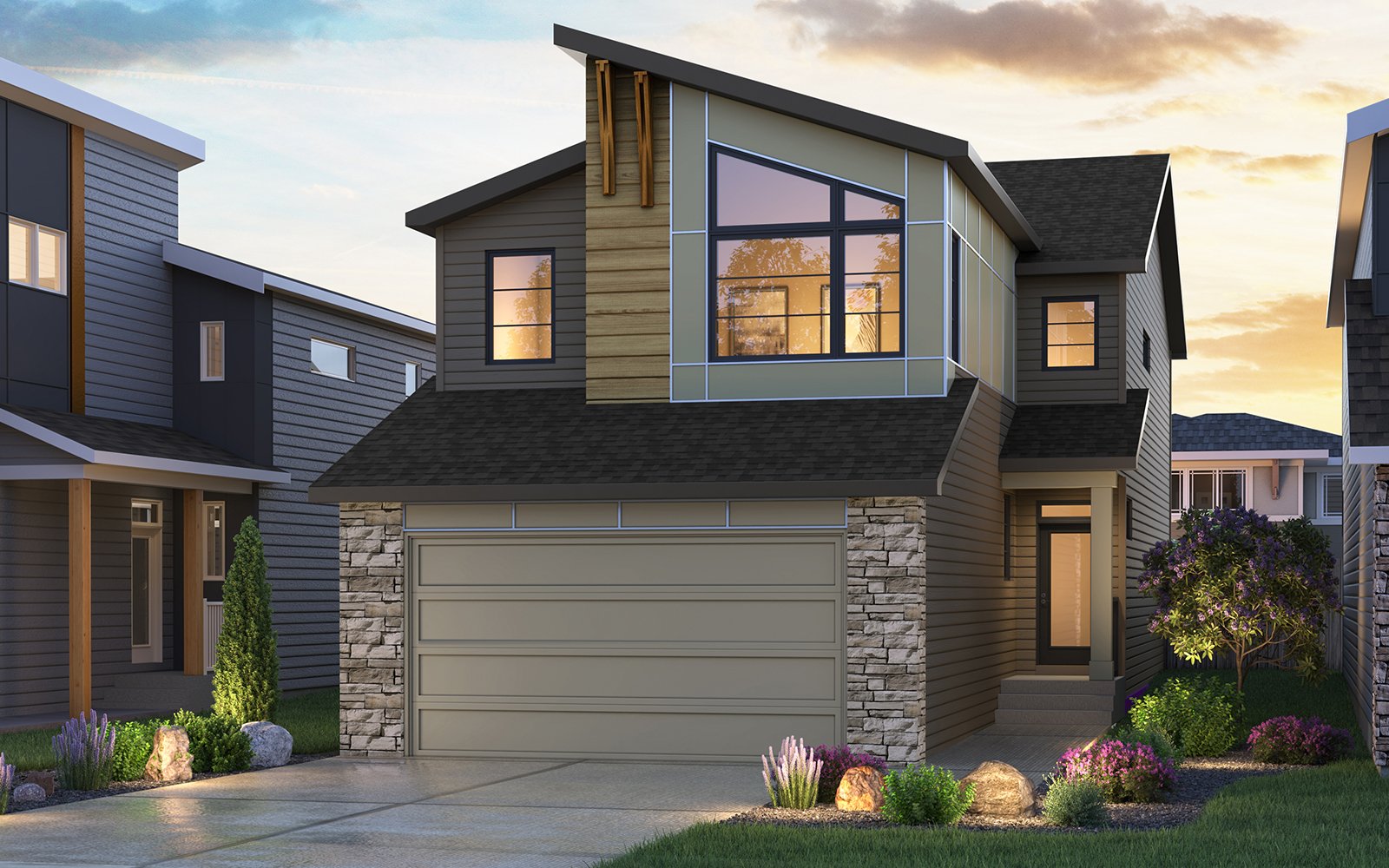 The Amery 26 is designed for practical, flexible living. The main floor features a private flex room, ideal for a home office, hobby space, or optional main-level bedroom with a full bath. An oversized pantry and abundant storage, including a mudroom walk-in closet, keep the home organized and convenient. Expansive windows flood both floors with natural light, creating an airy, open feel and a strong sense of connection throughout the home.